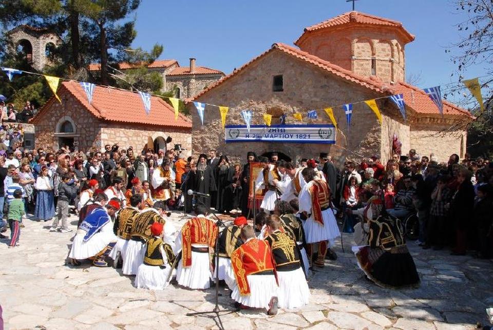 ΚΑΛΑΒΡΥΤΑ-ΑΓ.ΛΑΥΡΑ-ΜΕΓΑ ΣΠΗΛΑΙΟ ΑΝΑΠΑΡΑΣΤΑΣΗ ΕΠΑΝΑΣΤΑΣΗΣ 1821